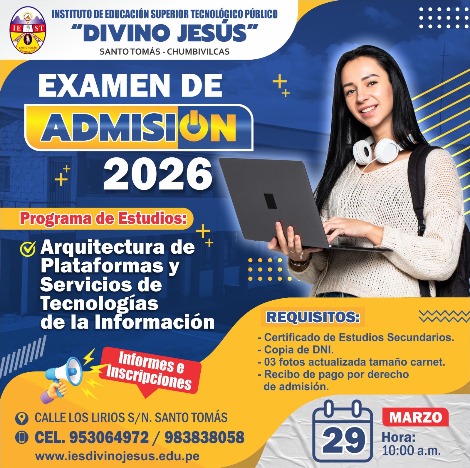 Descubre nuestra oferta educativa diseñada para las exigencias del mercado laboral actual. En solo 3 años, conviértete en un profesional técnico competente, con valores sólidos y visión emprendedora. Obtén tu Título a Nombre de la Nación y asegura tu futuro.